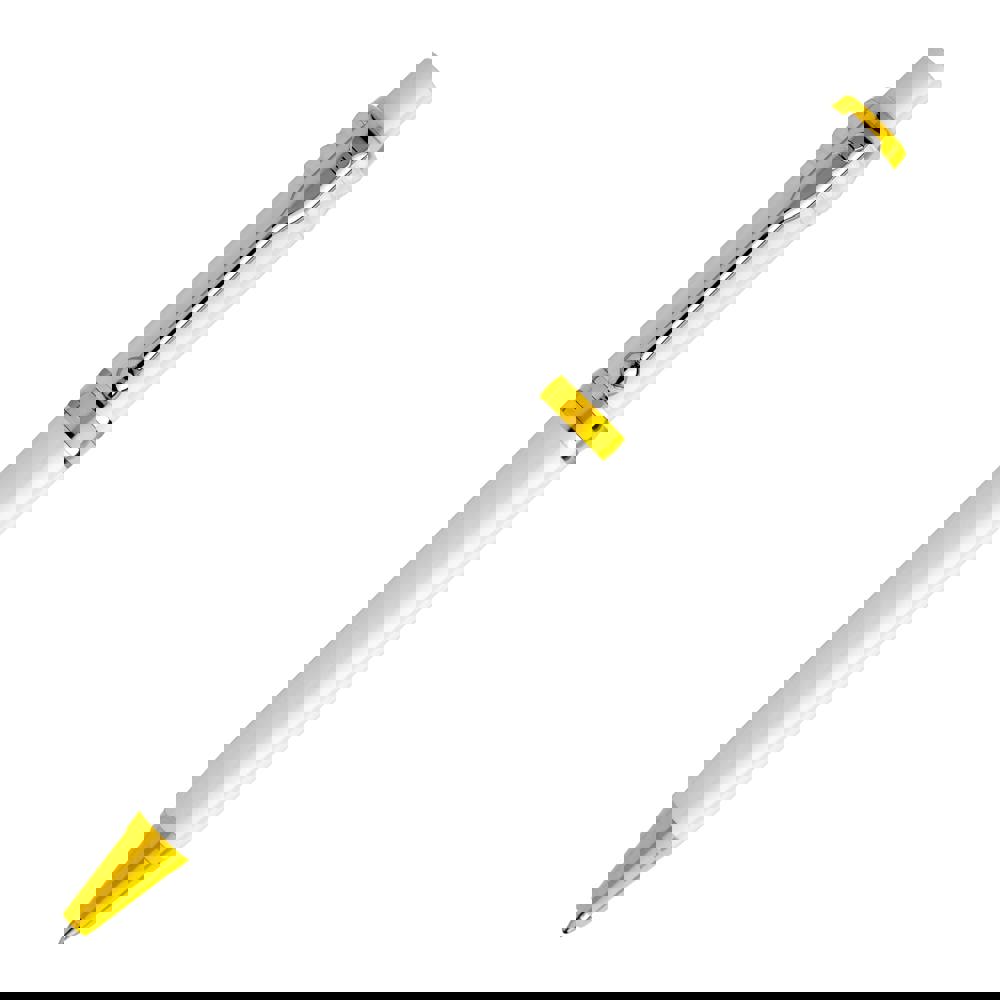 Eines der beliebtesten Modelle von Stilolinea ist der Hardcolour Kugelschreiber Raja mit einem weißem Schaft sowie einer farbigen Spitze und einem farbigen Ring. Ausgestattet mit einer blau schreibenden Jumbo-Refill-Mine. Der Druckkugelschreiber besteht aus ABS und Metall und wird in Europa hergestellt. Ab einer Abnahmemenge von 5.000 Stück sind eigene Farbkombinationen möglich.