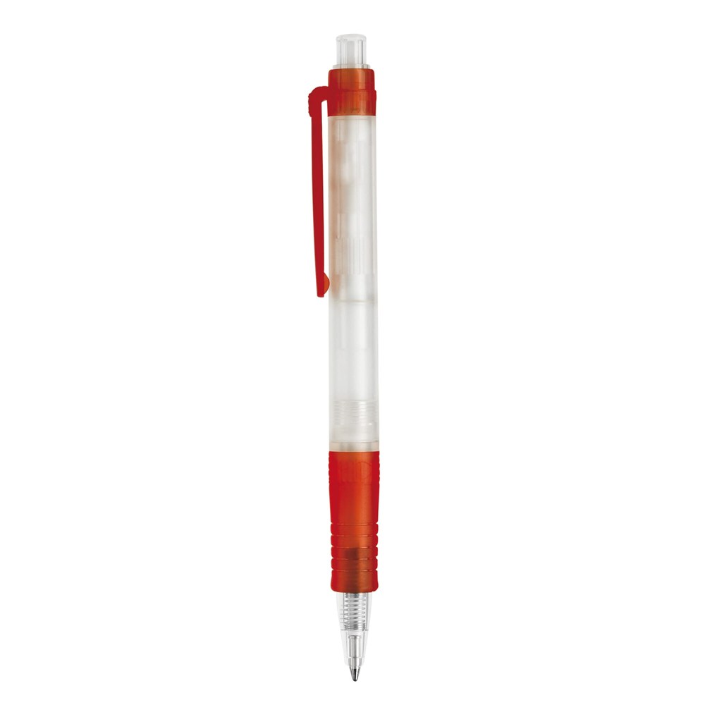Transparenter Kugelschreiber Vegetal-Clear mit farbigem Clip. Hergestellt aus PLA, einem biologisch abbaubarem Material. Somit eine umweltfreundliche Wahl für einen Werbeartikel. Blauschreibende X20-Mine. Made in Europe. Ab einer Abnahmemenge von 5.000 Stück sind eigene Farbkombinationen möglich.