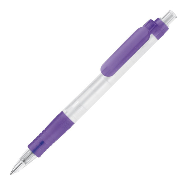 Transparenter Kugelschreiber Vegetal-Clear mit farbigem Clip. Hergestellt aus PLA, einem biologisch abbaubarem Material. Somit eine umweltfreundliche Wahl für einen Werbeartikel. Blauschreibende X20-Mine. Made in Europe. Ab einer Abnahmemenge von 5.000 Stück sind eigene Farbkombinationen möglich.