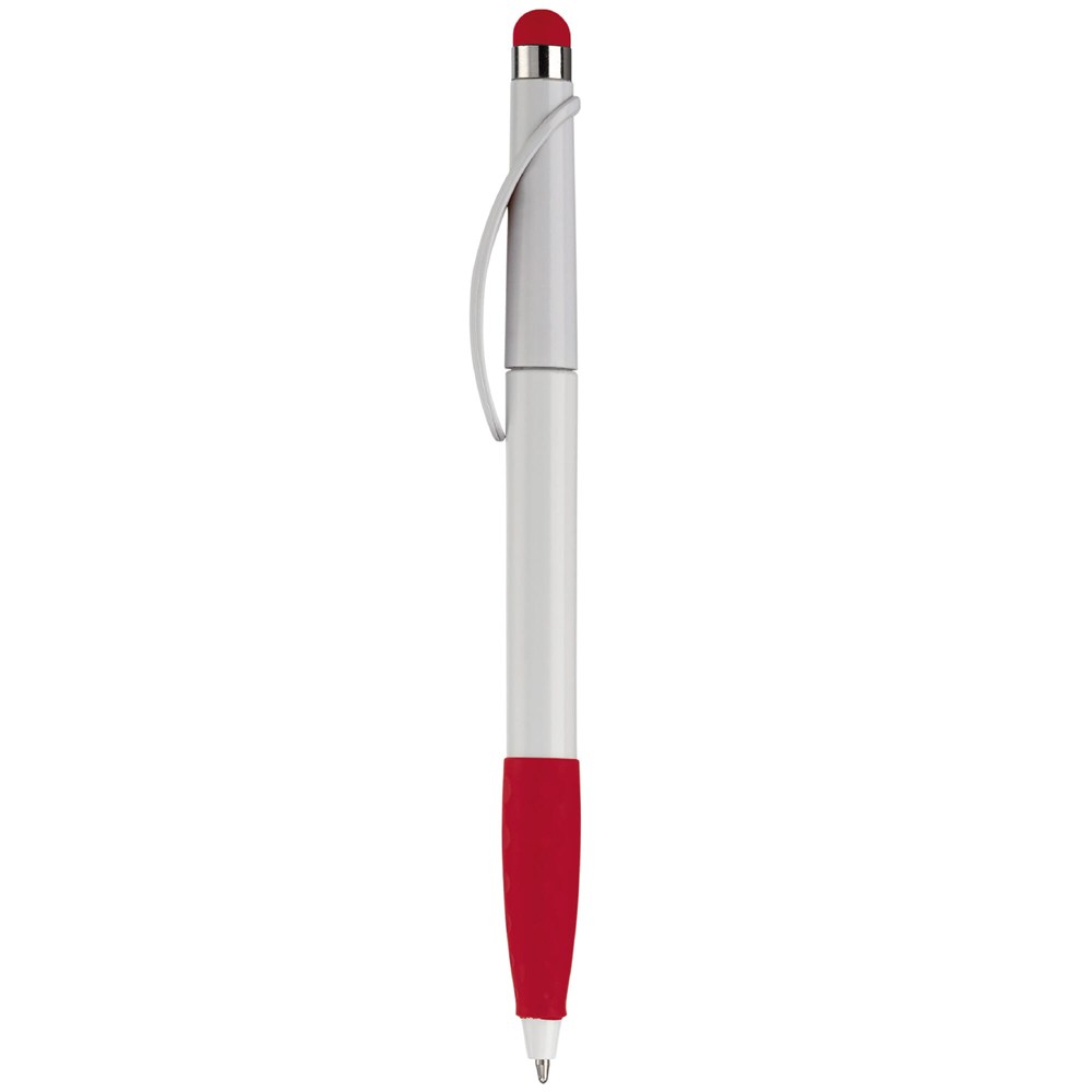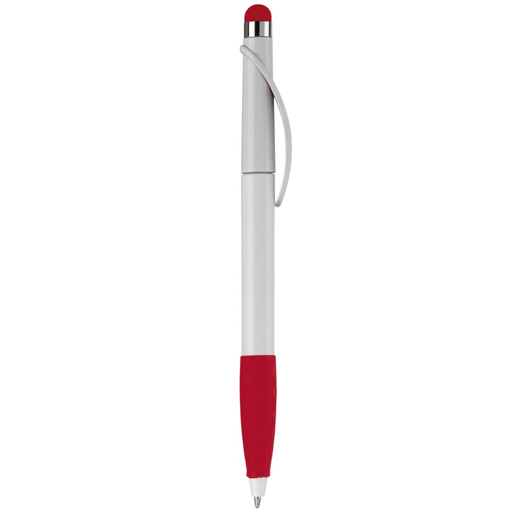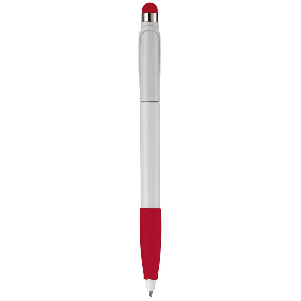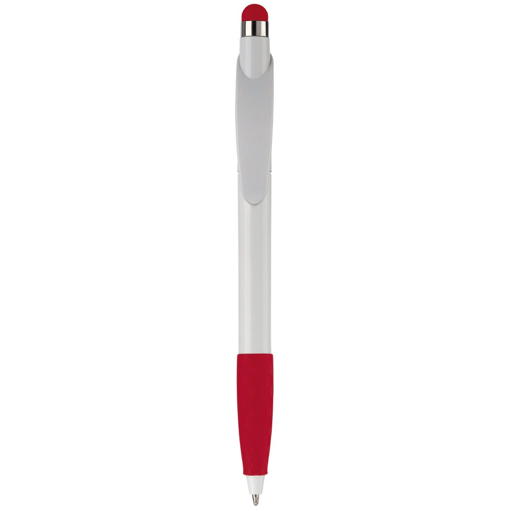 Kunststoffkugelschreiber mit Bogenclip, Gummimanschette und Stylus. Drehmechanik. Toppoint... mehr