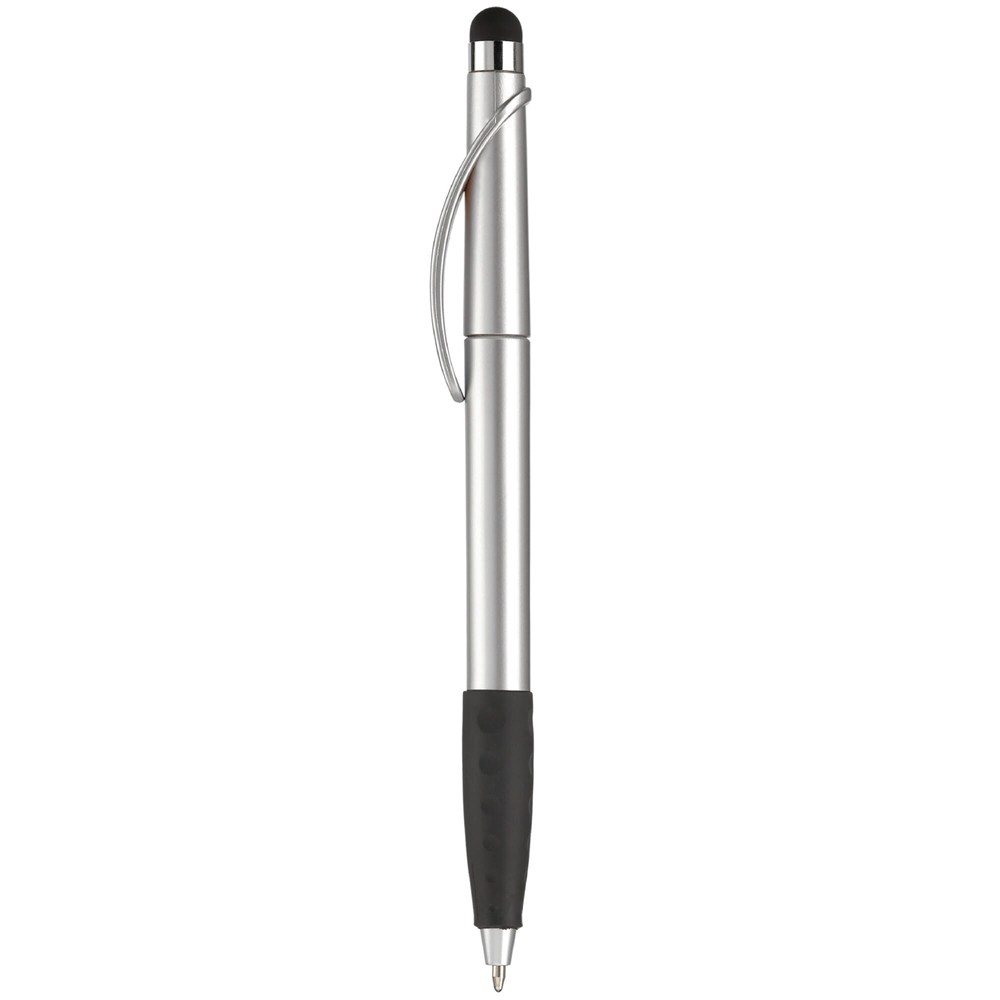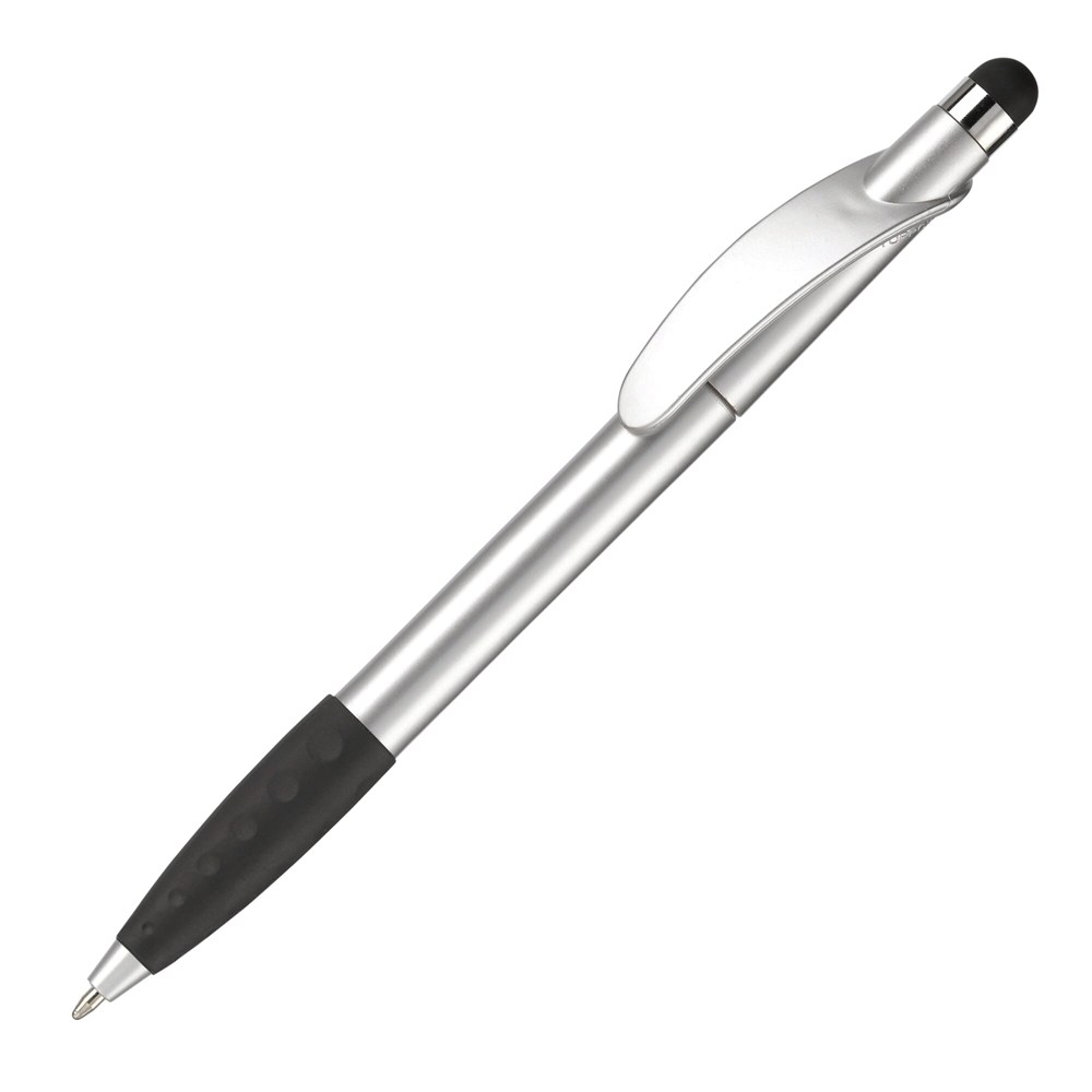 Kunststoffkugelschreiber mit Bogenclip, Gummimanschette und Stylus. Drehmechanik. Toppoint... mehr