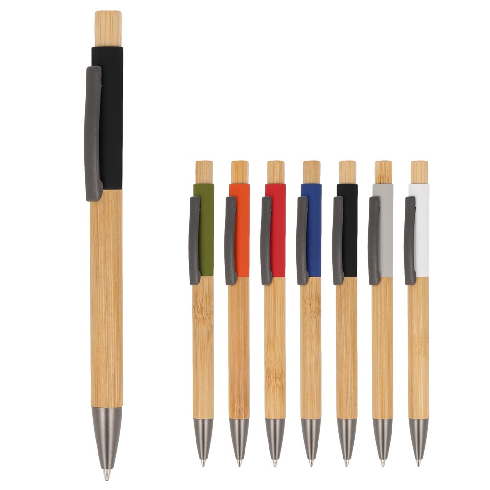 Wir stellen Ihnen „Madrid“ vor, unseren eleganten Aluminiumstift mit Metallclip, Holzschaft und Drücker; Bringen Sie einen Hauch von Natur in Ihr Schreiberlebnis. Schreibfarbe: Blau.