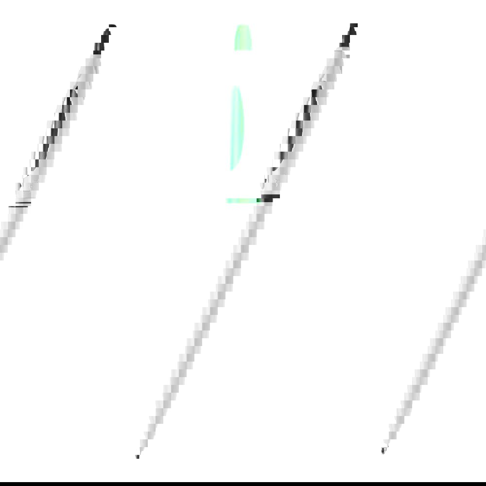 Der Hardcolour Kugelschreiber S! mit weißem Schaft und weißen Clip. Der Drücker und der Ring sind farbig. Ausgestattet mit einer blau schreibenden X20-Refill-Mine. Der Kugelschreiber besteht aus ABS und wird in Europa hergestellt. Ab einer Abnahmemenge von 5.000 Stück sind eigene Farbkombinationen möglich.