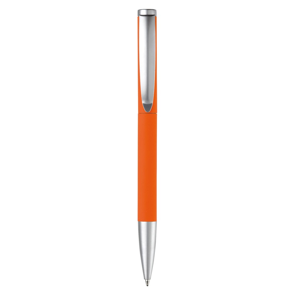Metallkugelschreiber, Toppoint Design, mit einer Metall Jumbo-Mine. Der Kugelschreiber hat eine Soft-Touch Oberfläche. Mit Drehmechanik, Metallclip und Metallspitze. Blauschreibend.