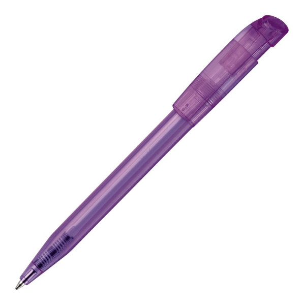Moderner transparenter Kugelschreiber mit gebogenem Clip. Ein beliebter Werbeartikel wegen seiner... mehr