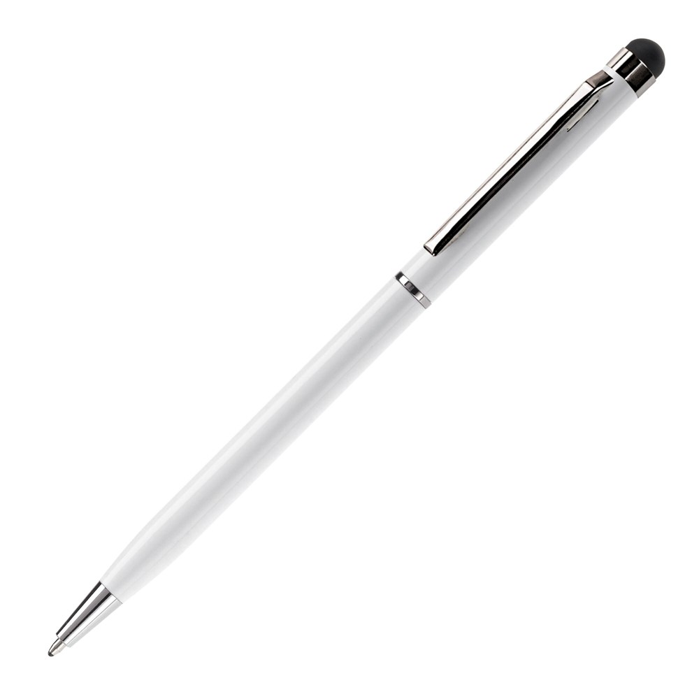 Moderner Aluminium Drehkugelschreiber mit Stylus. Blauschreibend. Ideal für Smartphones und Tablets.