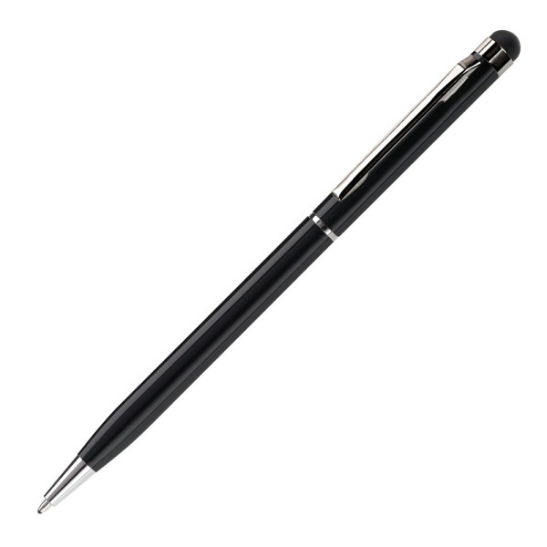 Moderner Aluminium Drehkugelschreiber mit Stylus. Blauschreibend. Ideal für Smartphones und Tablets.