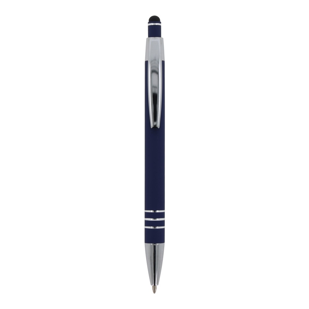Kugelschreiber aus Aluminium mit elegantem Soft-Touch-Finish und Stylus. Mit massivem Metallclip. Schreibfarbe: blau.