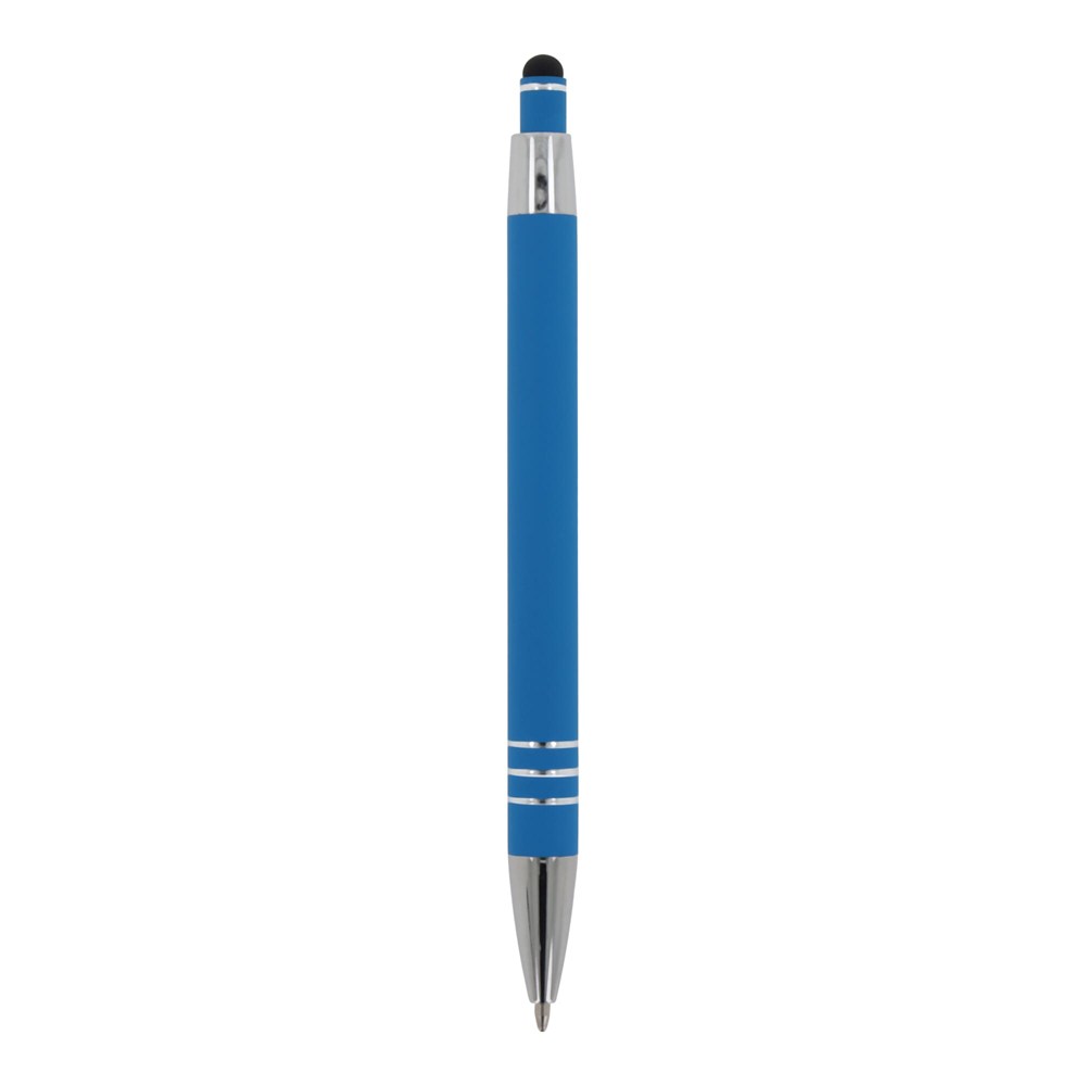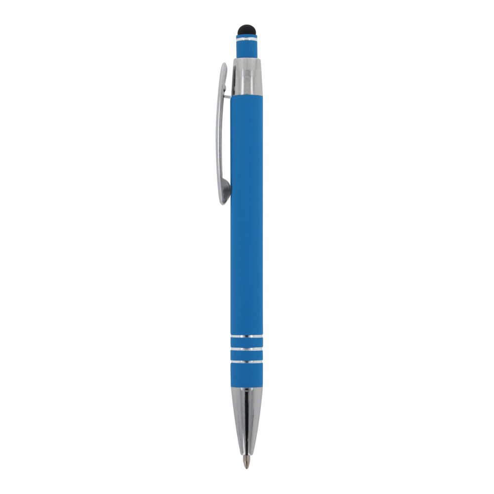 Kugelschreiber aus Aluminium mit elegantem Soft-Touch-Finish und Stylus. Mit massivem Metallclip. Schreibfarbe: blau.