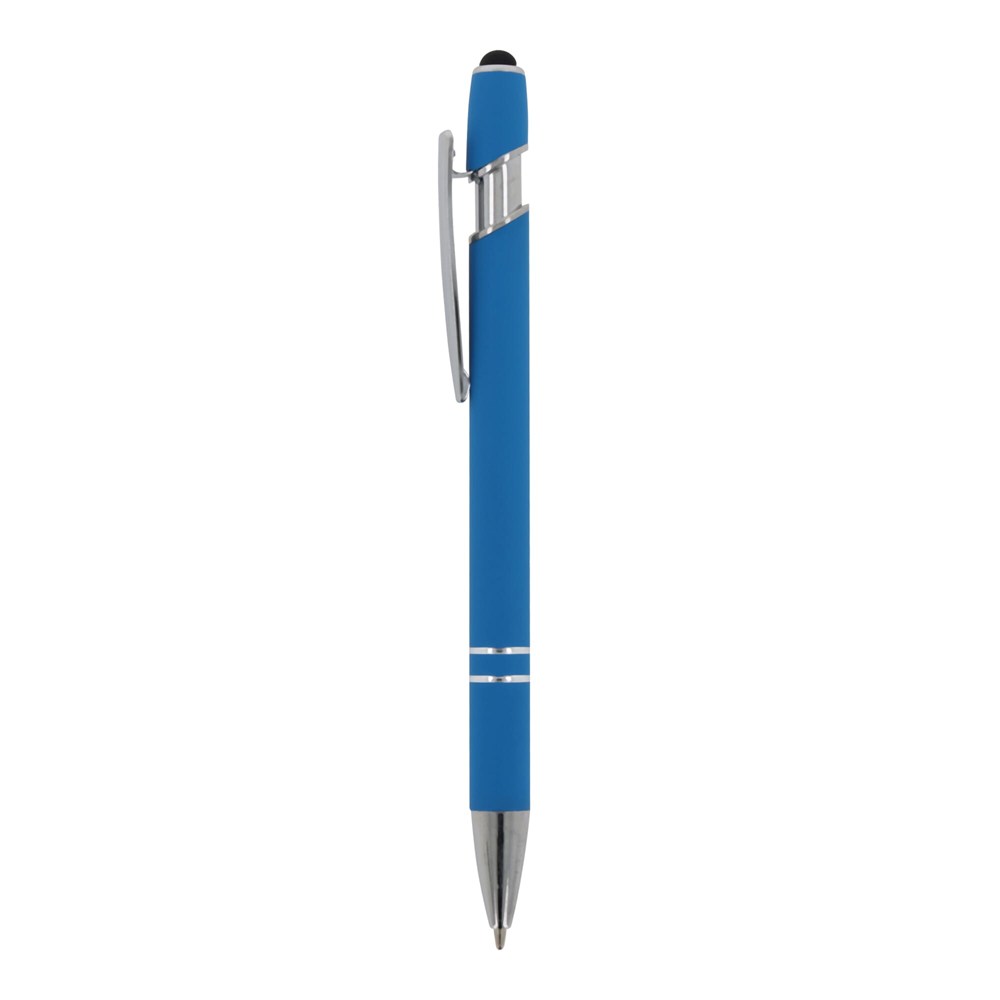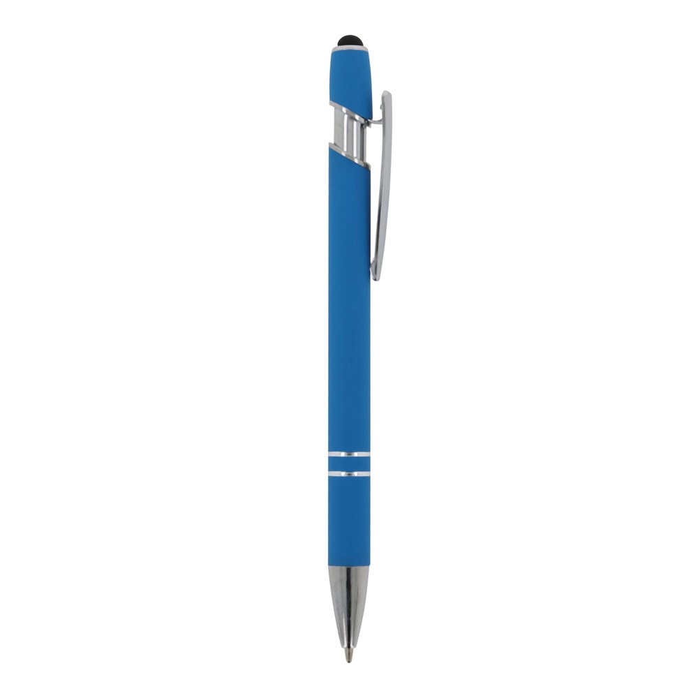 Kugelschreiber aus Aluminium mit elegantem Soft-Touch-Finish und Stylus. Mit massivem Metallclip. Schreibfarbe: blau.