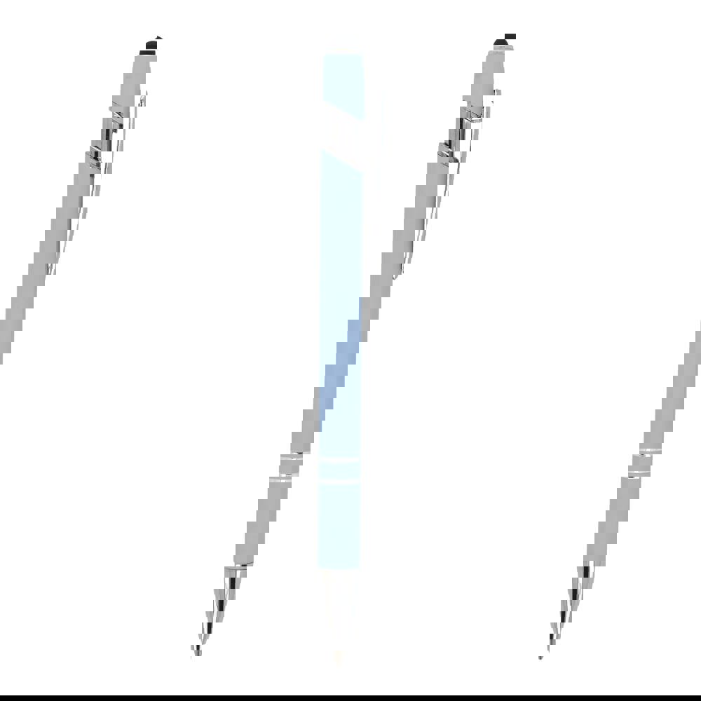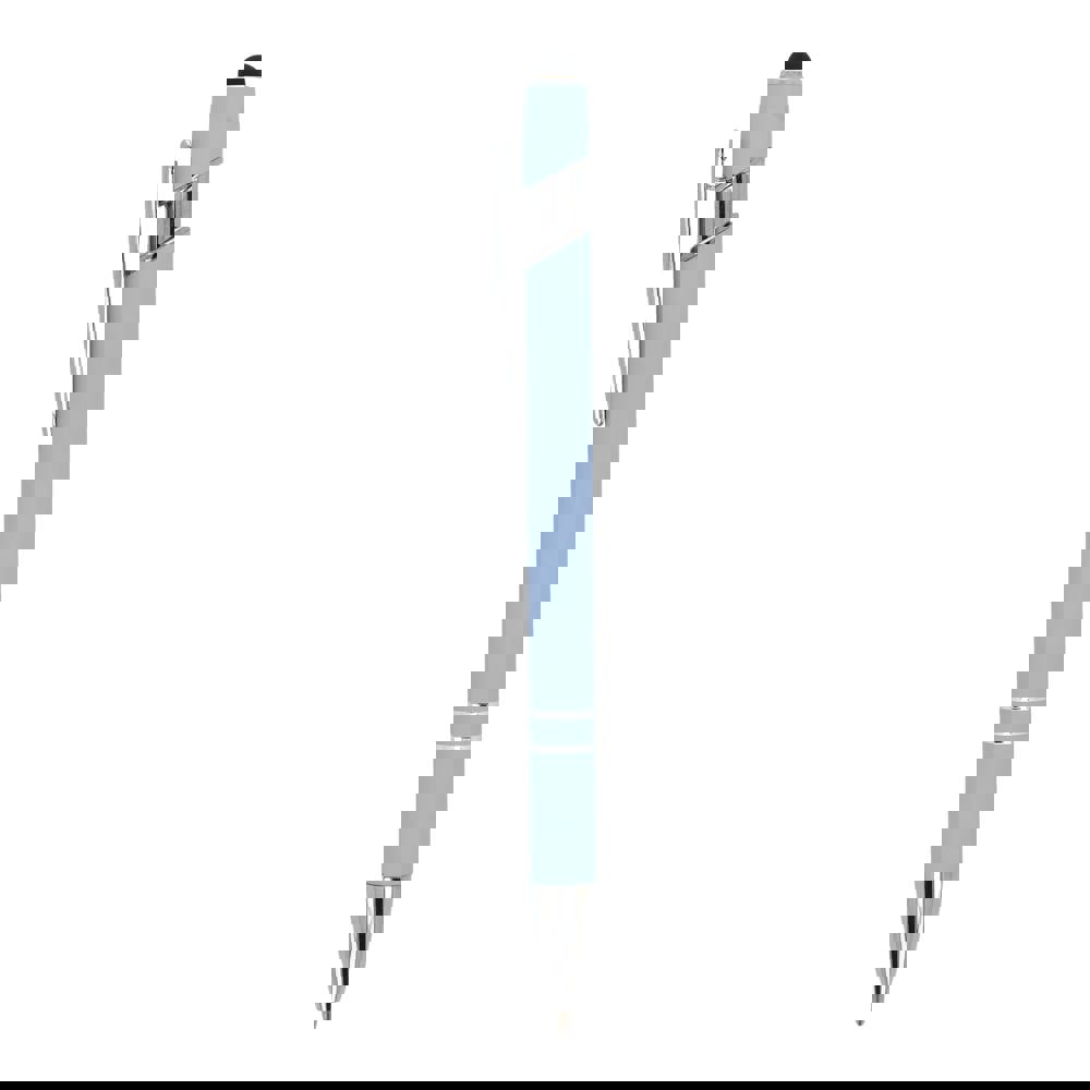Kugelschreiber aus Aluminium mit elegantem Soft-Touch-Finish und Stylus. Mit massivem Metallclip. Schreibfarbe: blau.