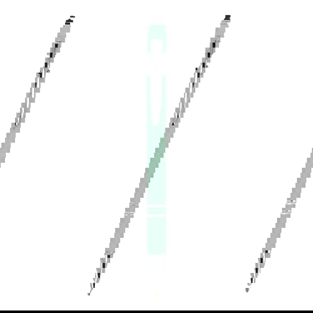 Kugelschreiber aus Aluminium mit elegantem Soft-Touch-Finish und Stylus. Mit massivem Metallclip. Schreibfarbe: blau.