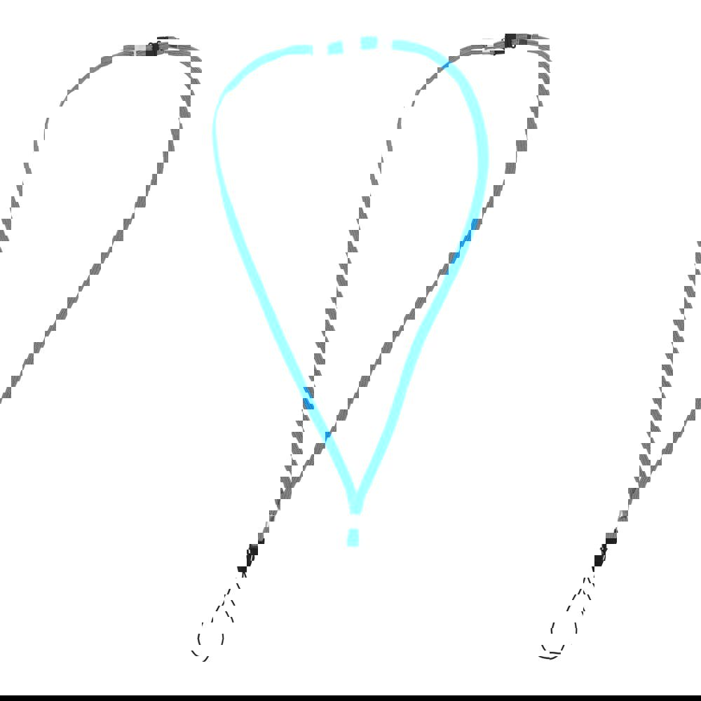 3-farbiger Kugelschreiber mit Griffzone und Schlüsselband. Die Schreibfarben sind Blau, Schwarz und Rot.