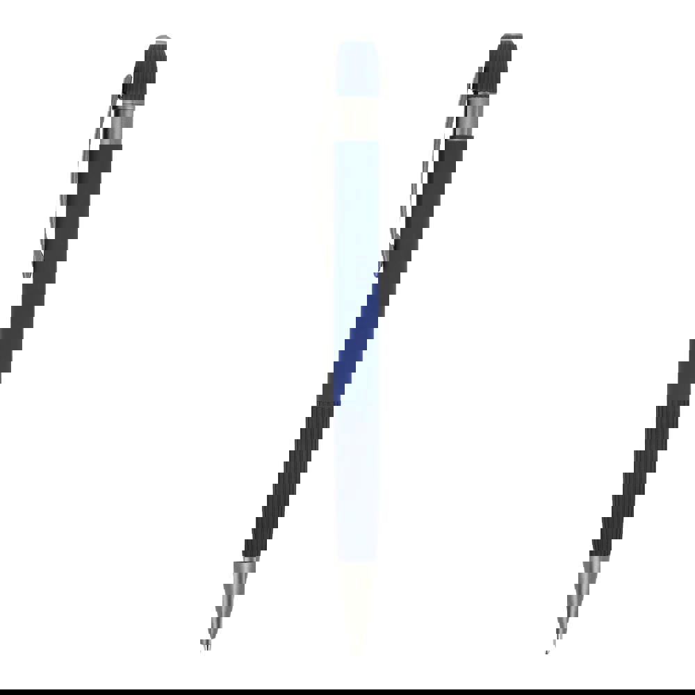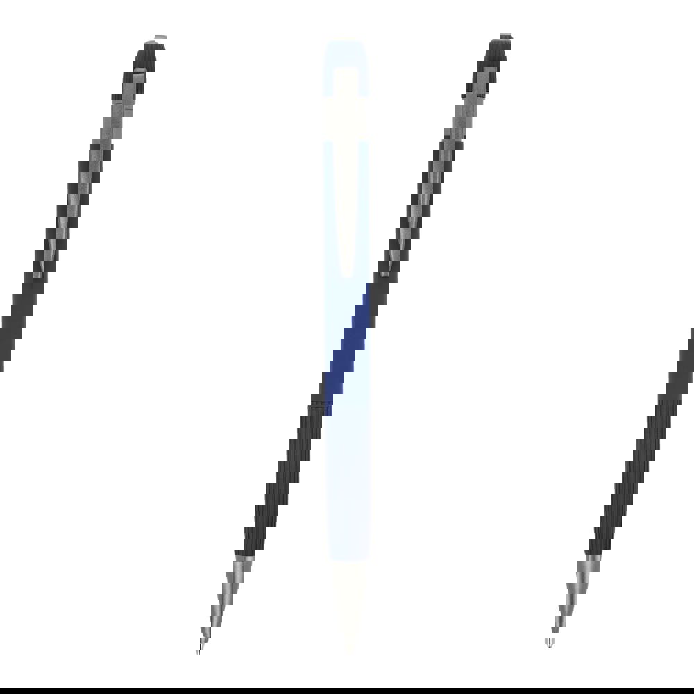 Eleganter Aluminium-Kugelschreiber mit Metallclip. Mit beliebten vertikalen Streifen auf dem Schaft und dem Druckknopf. Der Stift wird mit blauer Tinte geliefert.