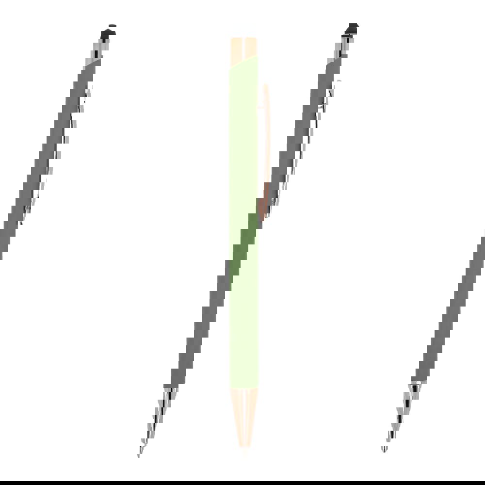Stilvoller Kugelschreiber aus recyceltem Aluminium mit Metallclip. Die Farbe Rosa findet sich sowohl in den Akzenten des Kugelschreibers als auch in der Farbe der Lasergravur wieder. Der Kugelschreiber wird mit einer blauen Jumbo-Mine geliefert.