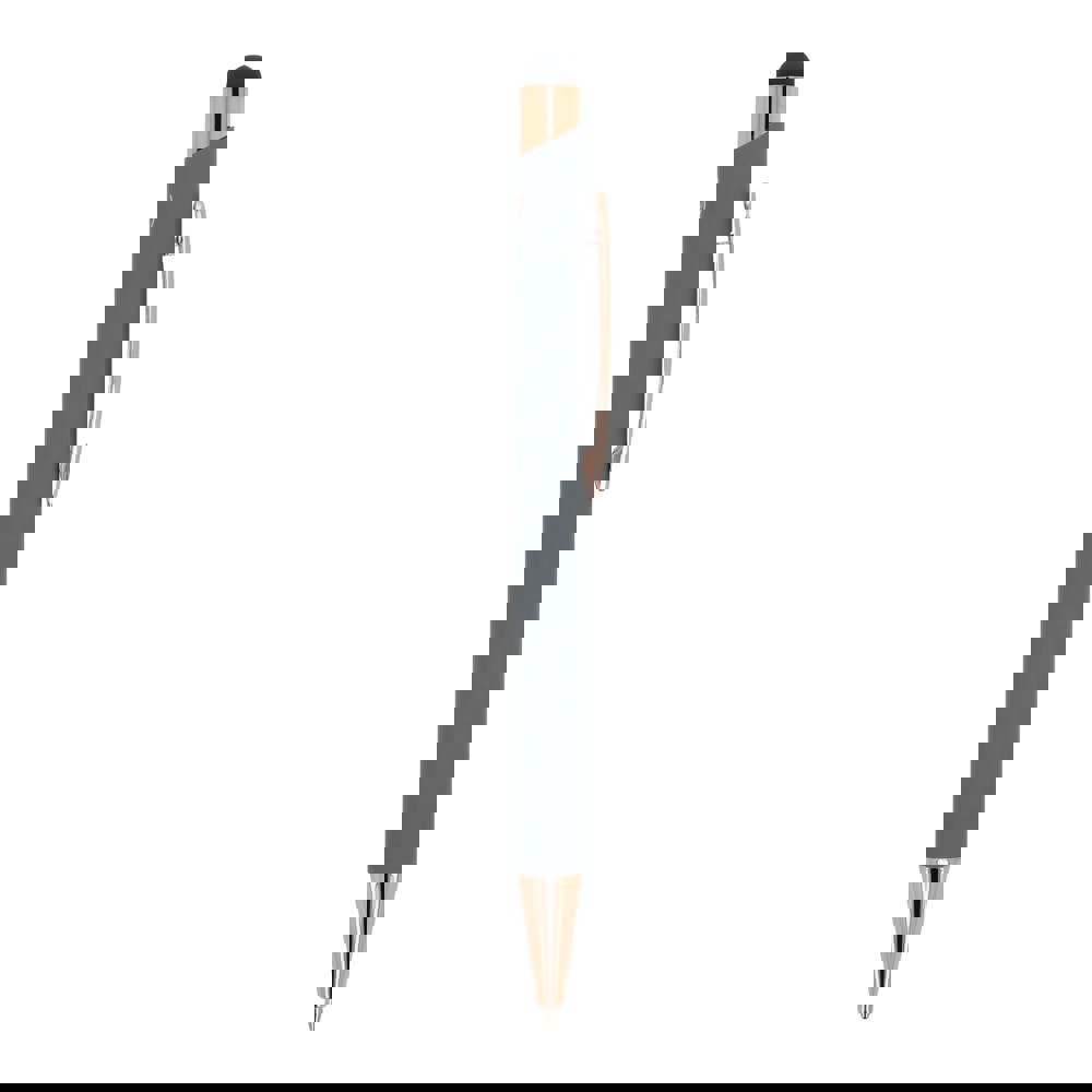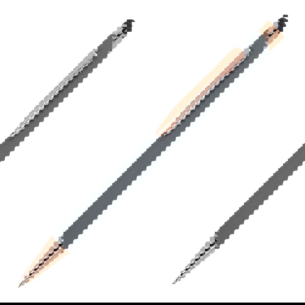 Stilvoller Kugelschreiber aus recyceltem Aluminium mit Metallclip. Die Farbe Rosa findet sich sowohl in den Akzenten des Kugelschreibers als auch in der Farbe der Lasergravur wieder. Der Kugelschreiber wird mit einer blauen Jumbo-Mine geliefert.