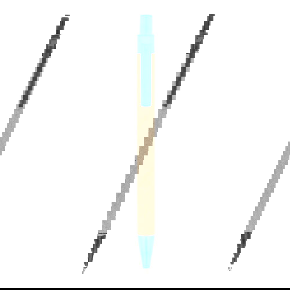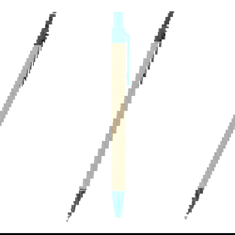 Papierkugelschreiber mit farbigen Kunststoffteilen aus recyceltem Material. Mit blauer Schreibmine.