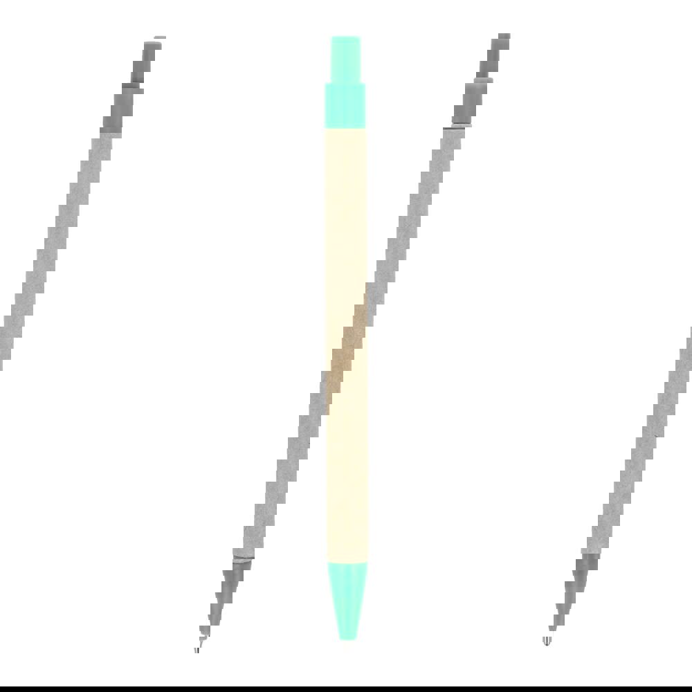 Papierkugelschreiber mit farbigen Kunststoffteilen aus recyceltem Material. Mit blauer Schreibmine.