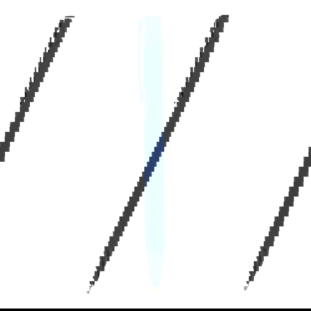 Softtouch-Kugelschreiber aus recyceltem Aluminium. Mit farblich passendem Clip und blauer Jumbo-Mine.