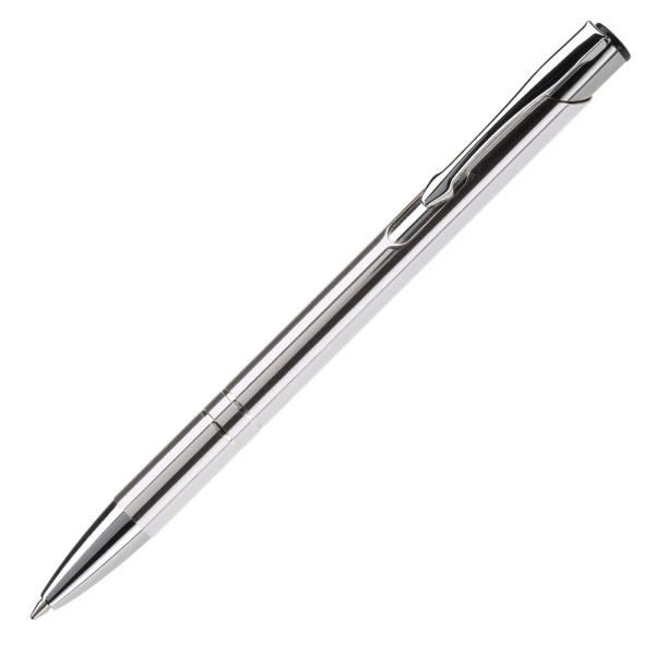 Eleganter Aluminium Kugelschreiber mit 2 Ringen am Schaft. Blauschreibende Kunststoffmine.