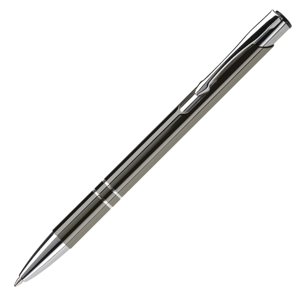 Eleganter Aluminium Kugelschreiber mit 2 Ringen am Schaft. Blauschreibende Kunststoffmine.