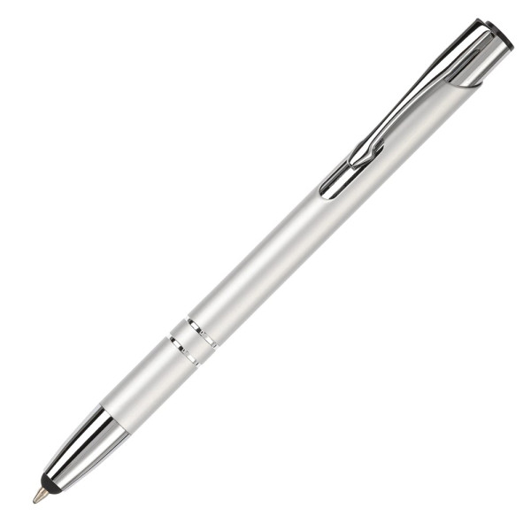 Eleganter Aluminium Kugelschreiber mit Touch Funktion und 2 Ringen am Schaft. Blauschreibend.