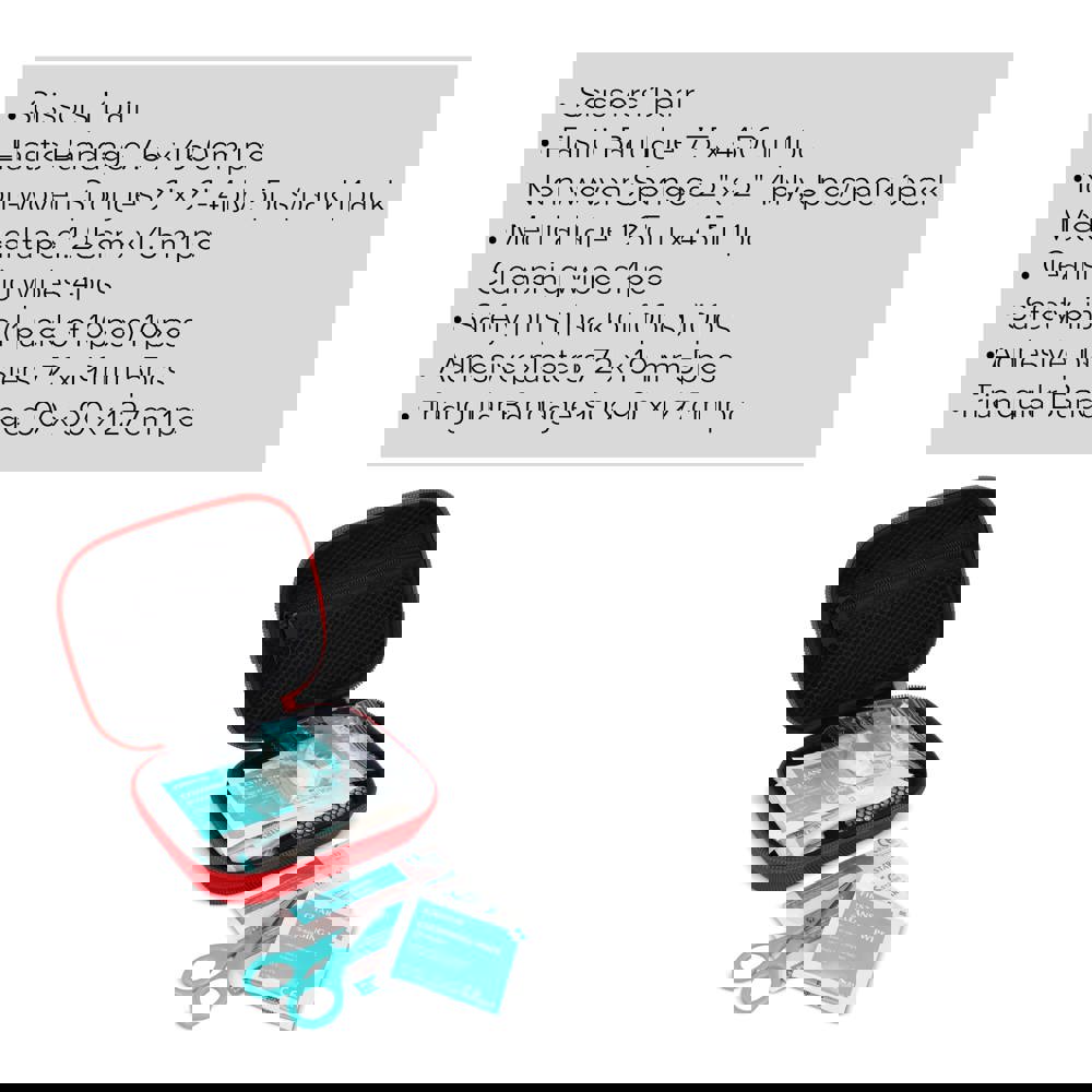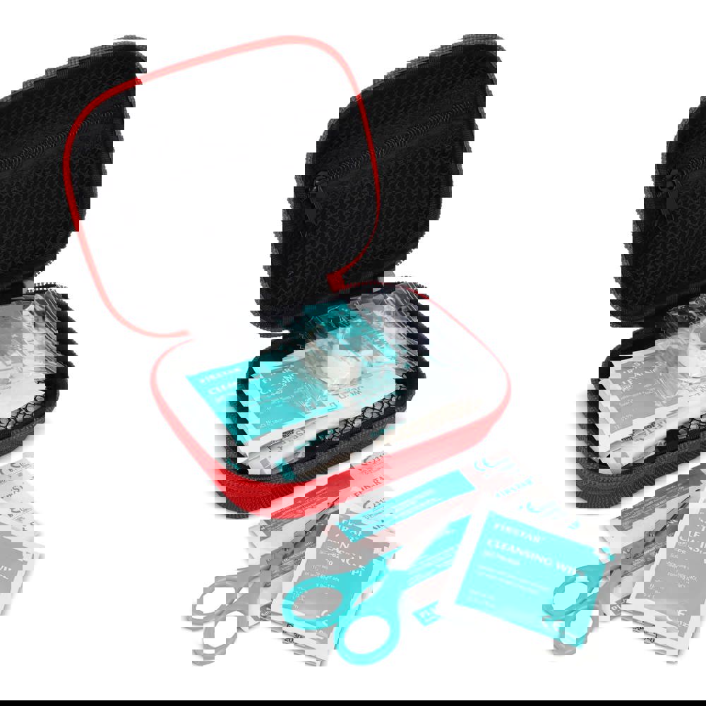 Dieses Erste-Hilfe-Set ist in einem robusten EVA-Koffer verpackt und entspricht den europäischen Normen für Erste-Hilfe-Artikel. Es eignet sich ideal für den Einsatz zu Hause, im Büro, im Auto oder bei Outdoor-Aktivitäten. Kompakt und praktisch, enthält es wichtige Artikel zur Versorgung kleinerer Verletzungen, Schnitte oder Verstauchungen, bis professionelle Hilfe verfügbar ist. Inhalt: 1 × Schere, 1 × elastische Kreppbinde 7,5 × 450 cm, 1 × Wundverband 2„ × 2“ 4-lagig (5 Stück), 1 × medizinisches Klebeband 1,25 cm × 4,5 m, 4 × Reinigungstücher, 1 × Sicherheitsnadeln (10 Stück), 5 × Heftpflaster 72 × 19 mm PE, 1 × Dreieckstuch 90 × 90 × 127 cm