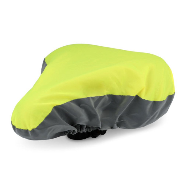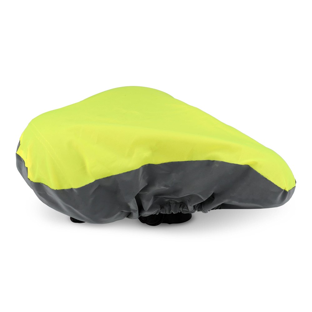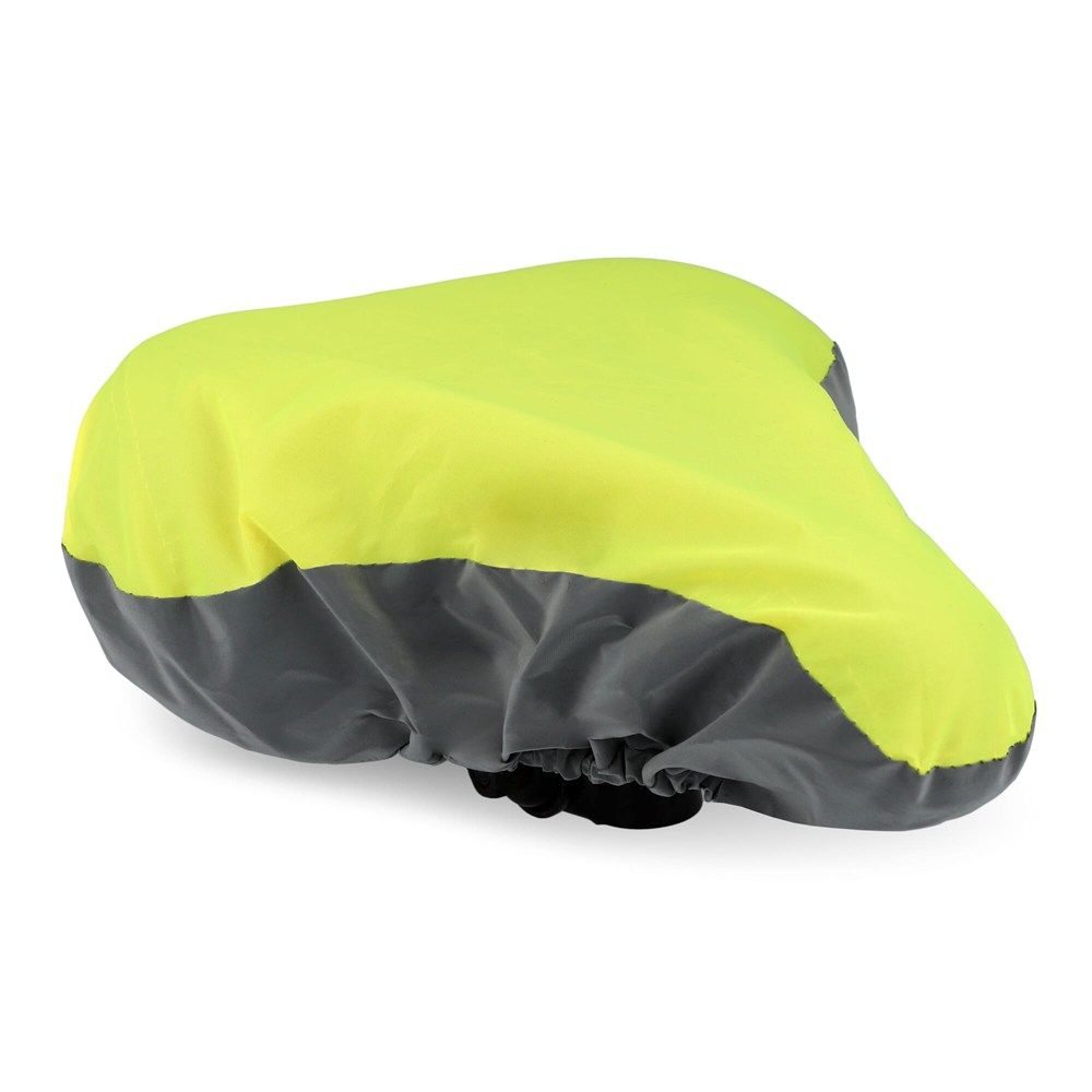 Fahrradsattelüberzug aus recyceltem PET-Material mit einem reflektierenden Teil für bessere Sichtbarkeit bei schlechten Lichtverhältnissen. Einfach mit einem Gummiband zu befestigen und passt für die meisten Standard-Sattel. Die perfekte Wahl, um Ihren Sitz vor Regen und Verschleiß zu schützen. Wasserabweisend.