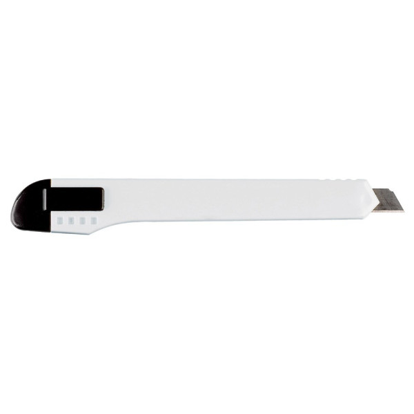 Hobbymesser mit zwölf Abbrechklingen und einer Clip-Befestigung. Die Breite der Klinge beträgt 9 mm.