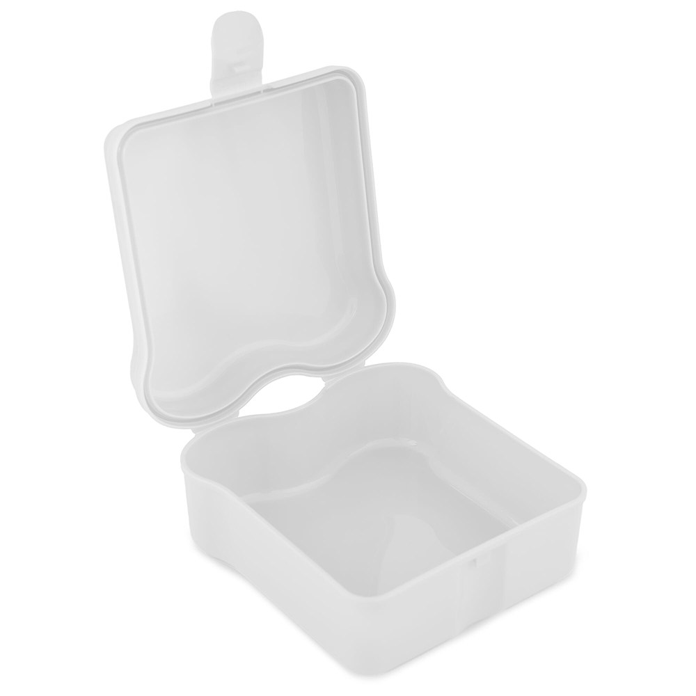 Brotdose in Form eines Sandwiches. Die Brotdose ist aus einem Teil gefertigt. Mit einem Clip auf der Vorderseite zum Verschließen der Box. Hergestellt in Deutschland.