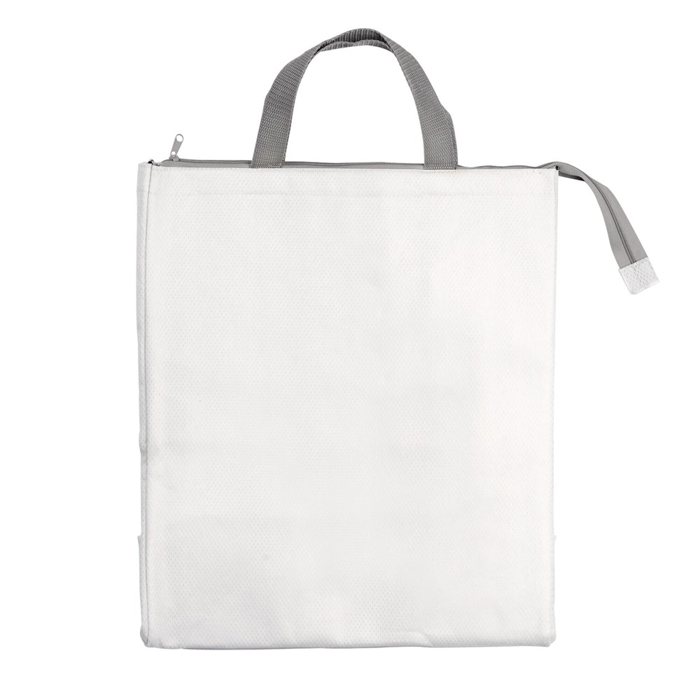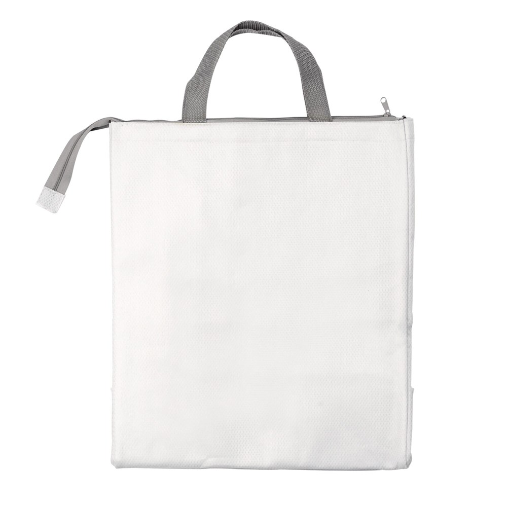 Große Kühltasche aus Non-Woven mit Reißverschluss und festem Griff und einer großen Druckfläche.