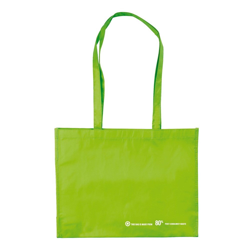 Robuste große Tasche aus 80 % recyceltem PET-Material. Große Druckfläche. Verschiedene Dimensionen verfügbar bei Bestellungen ab 3.000 Stück.