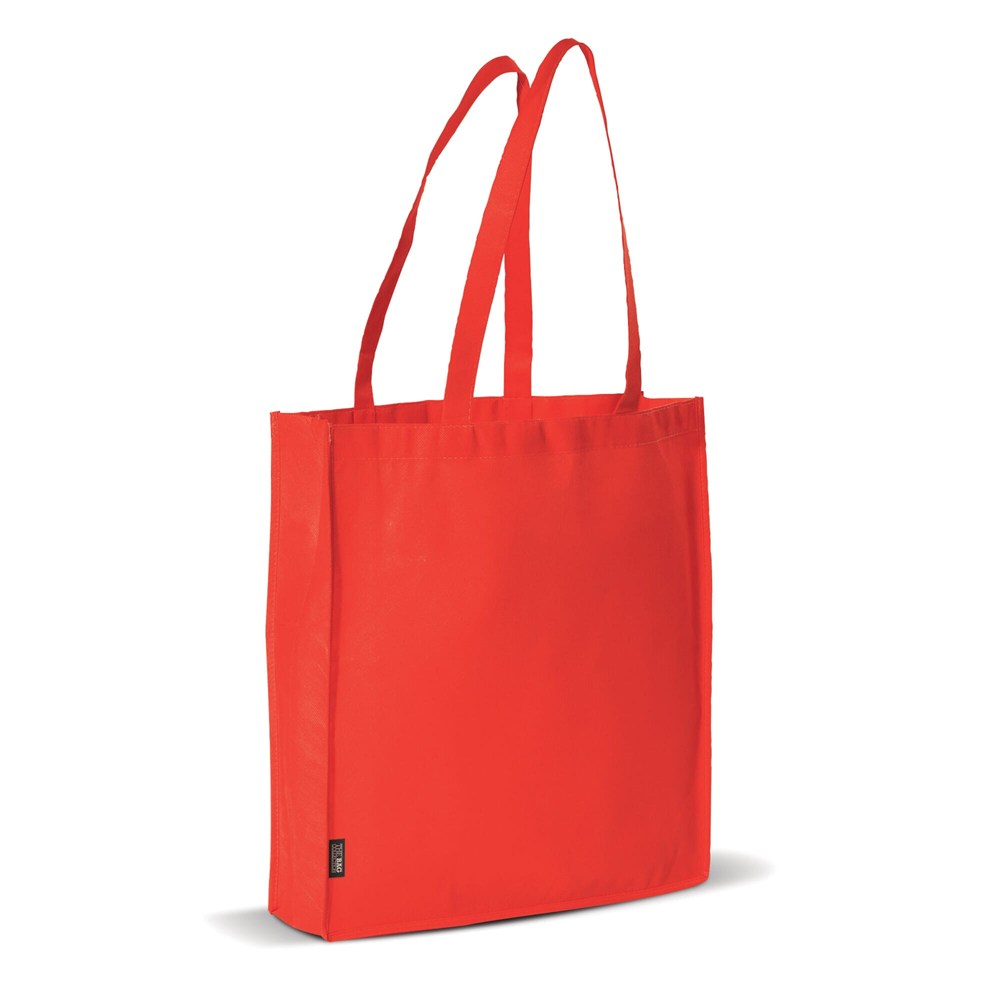 Non-Woven Tragetasche mit langen Griffen. Kann auch als Umhängetasche verwendet werden. Große Druckfläche.