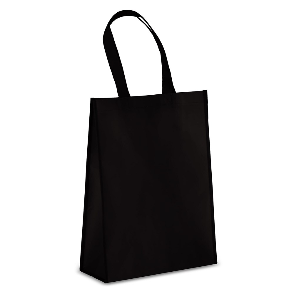 Tragetasche aus 70% recyceltem, laminiertem Non Woven. Mit robusten, genähten Griffen und einem geräumigen Innenraum, perfekt für den täglichen Gebrauch. Die nachhaltige Alternative zu laminierten Non Woven Taschen
