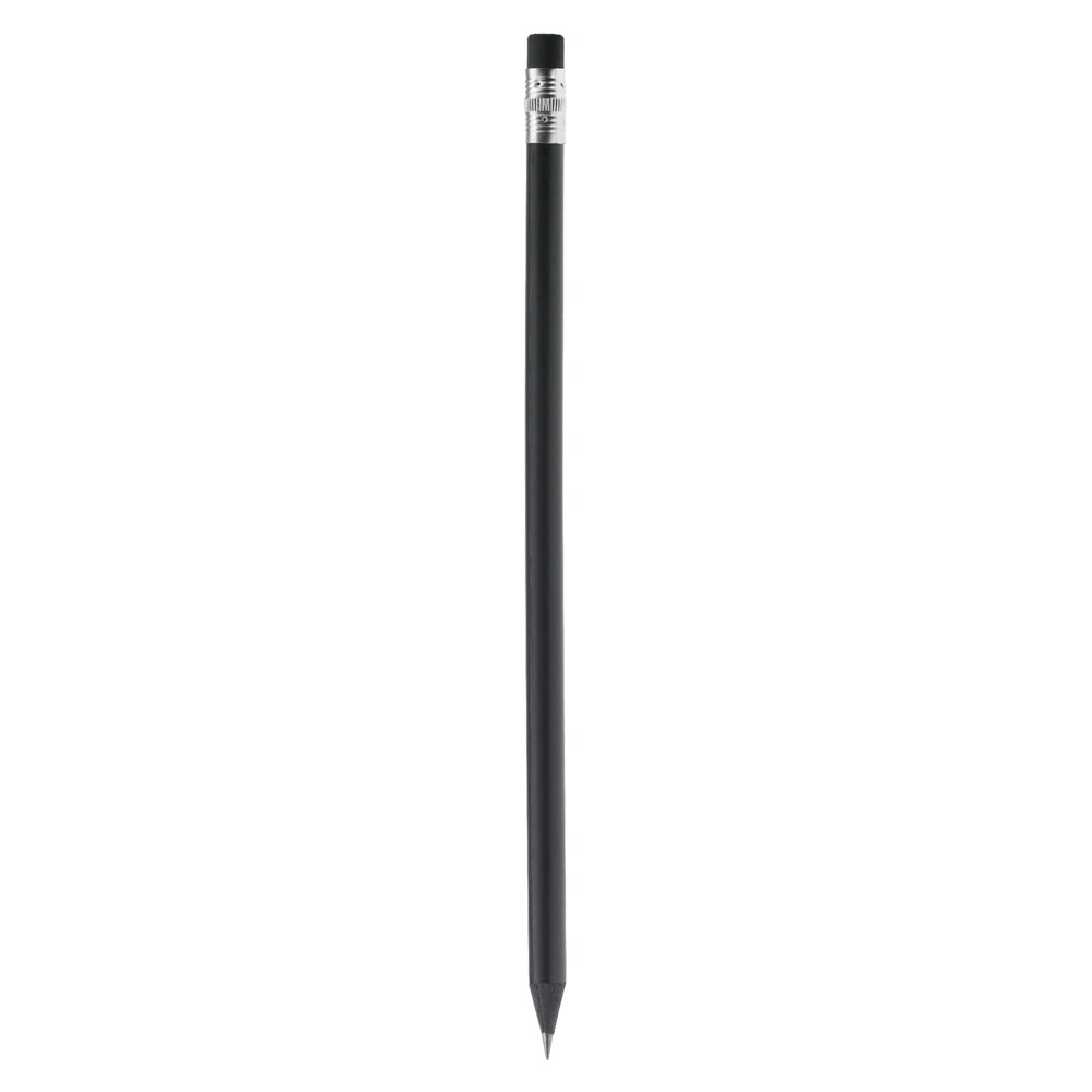 Schwarzer, runder Bleistift mit Radiergummi. Gespitzt und durchgefärbt. FSC Holz.