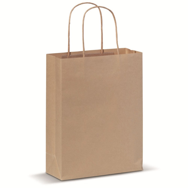 Kraftpapiertasche mit Griffen aus gedrehtem Papier. FSC-zertifiziert und in Europa hergestellt.