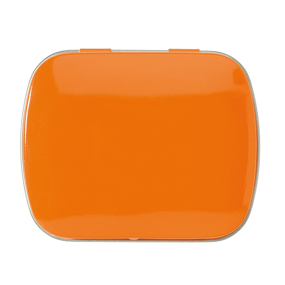 Quadratische Pfefferminzdose, gefüllt mit 23g holländischer Pfefferminzbonbons. Nicht zuckerfrei.