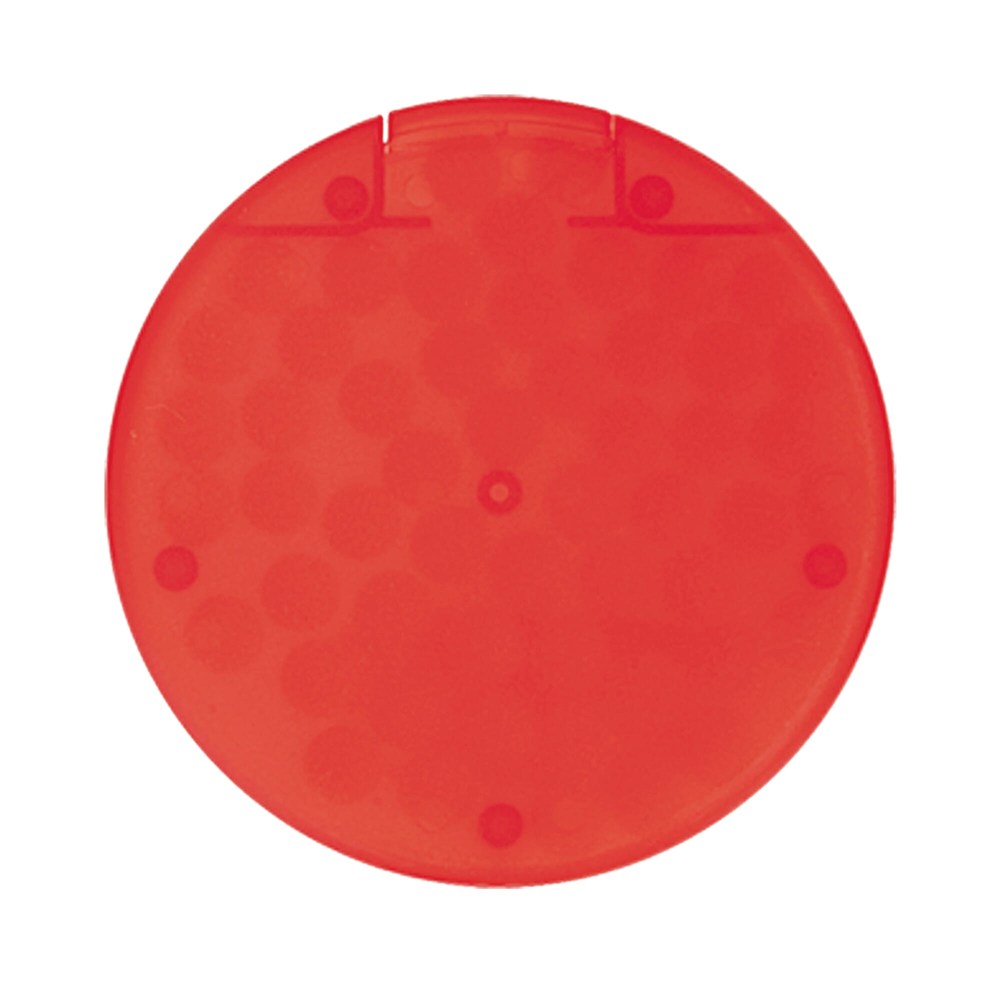 Flache und runde Pfefferminzdose, erhältlich in transparenten Farben oder in weiß. Ca. 6,5g zuckerfreies Pfefferminz. Die Druckfläche ist für einen vollfarbigen Digitaldruck geeignet. Die Produktspezifikationen befinden sich auf der Rückseite der Dose.
