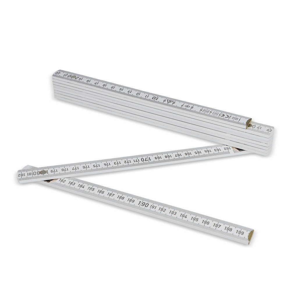 Profi Zollstock mit einer Gesamtlänge von 2 Metern. Langlebig und handlich, ideal für professionelle und Heimwerker-Projekte. Der Zollstock hat eine stoßfeste Beschichtung und extra starke Scharniere aus rostfreiem Stahl. Die Zollstöcke aus Buchenholz haben ein Rasterungswinkel von 180° grad und innenliegende durchgenietete Gelenkfedern. Duplex skaliert, CE-Zertifiziert und EU-Produktion.