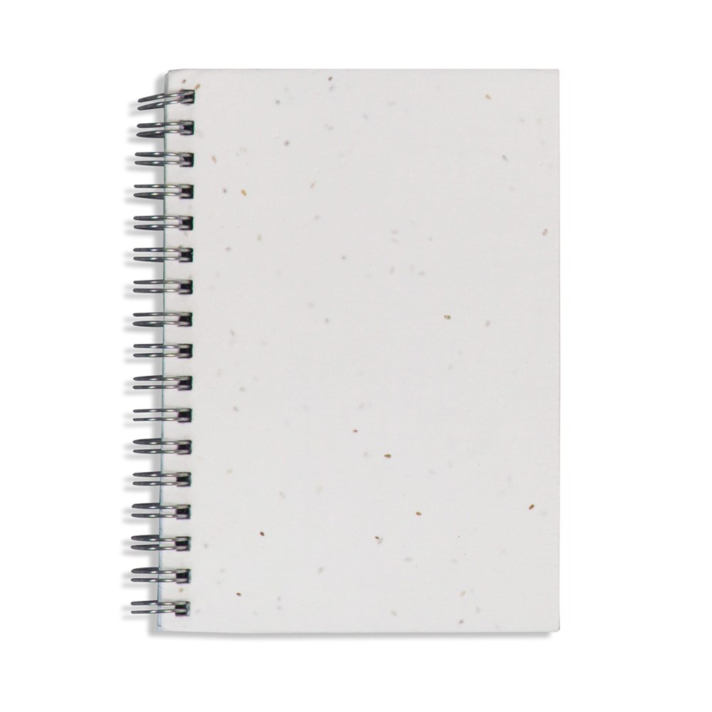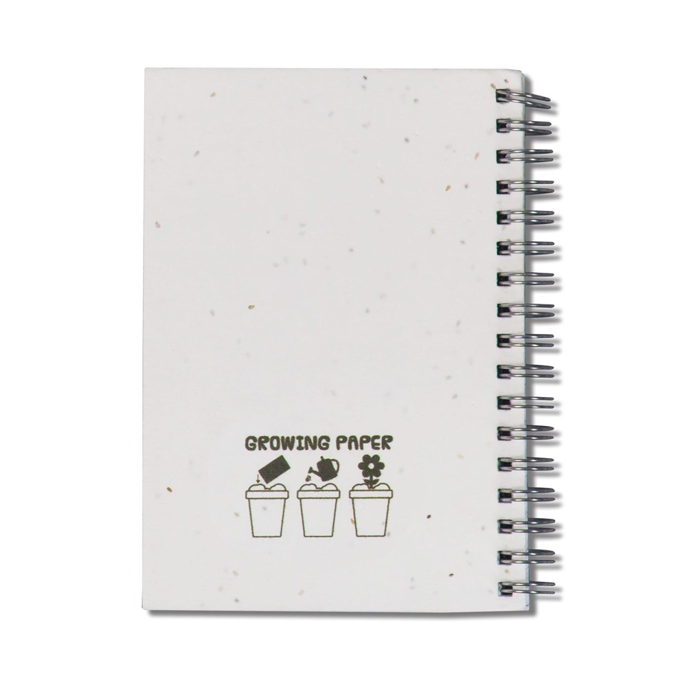 Nachhaltiges Notizbuch mit einem Umschlag aus Saatgutpapier. Pflanzen Sie den Umschlag nach seiner Verwendung ein und gießen Sie ihn. Im Laufe der Zeit sprießen die Samen ( Mischung aus u.a. Lavendel, Gänseblümchen, Chrysanthemen, Minze und Kirschtomate). Ihre Werbebotschaft wurd buchstäblich aufblühen und sie zu einer nachhaltigen und originellen Werbung machen. 100 karierte Seiten aus Recyclingpapier.