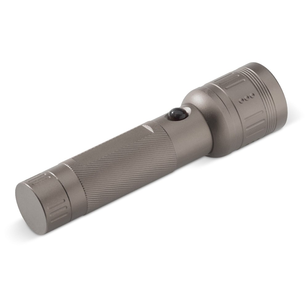 Nehmen Sie diese leichte und kompakte Aluminium-Taschenlampe mit zum Camping oder einem Abenteuer-Ausflug. Die Lampe hat eine 3W-LED und wird mit Batterien in einer Geschenkverpackung geliefert.