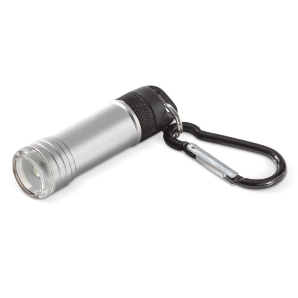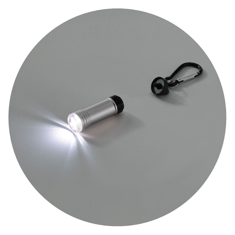 Die magnetische Taschenlampe Survival aus Aluminium lässt sich mit dem Karabiner einfach an einer Tasche befestigen. Wenn Sie die Lampe vom Karabiner trennen, schaltet sich das 0,5W-LED-Licht ein, wenn Sie die Lampe mit dem Magneten vom Karabiner wieder verbinden, schaltet sich die Lampe aus. Inkl. Batterien.