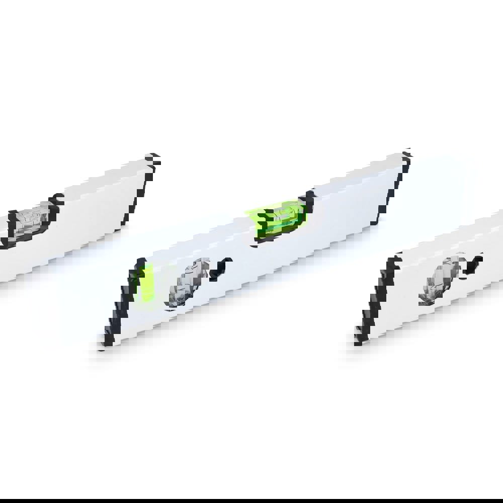 Diese 30 cm lange Wasserwaage verfügt über zwei Libellen, eine horizontale und eine vertikale, für eine genaue Ausrichtung in jede Richtung. Der integrierte Aufhängering ermöglicht eine einfache Aufbewahrung und die Zentimeterskala ermöglicht schnelle Messungen. Kompakt, praktisch und perfekt für jede Aufgabe.