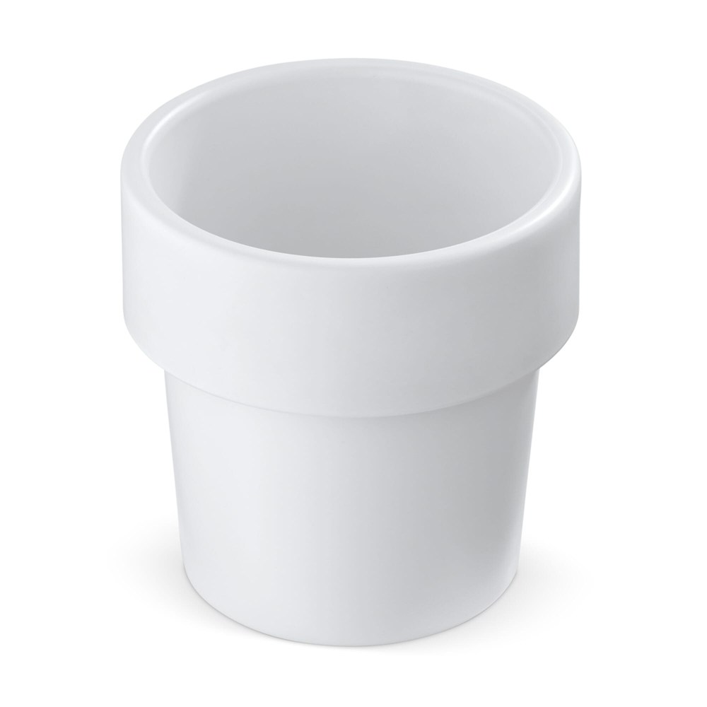 Ein Topf mit Basilikumsamen in verschiedenen bunten Farben. Wenn die Pflanze groß genug ist, um sie in den Garten zu bringen, kann der Topf gereinigt werden und ist als Kaffeebecher wiederverwendbar. Der Rand ist doppelwandig, damit man sich beim Trinken nicht die Hand verbrennt.