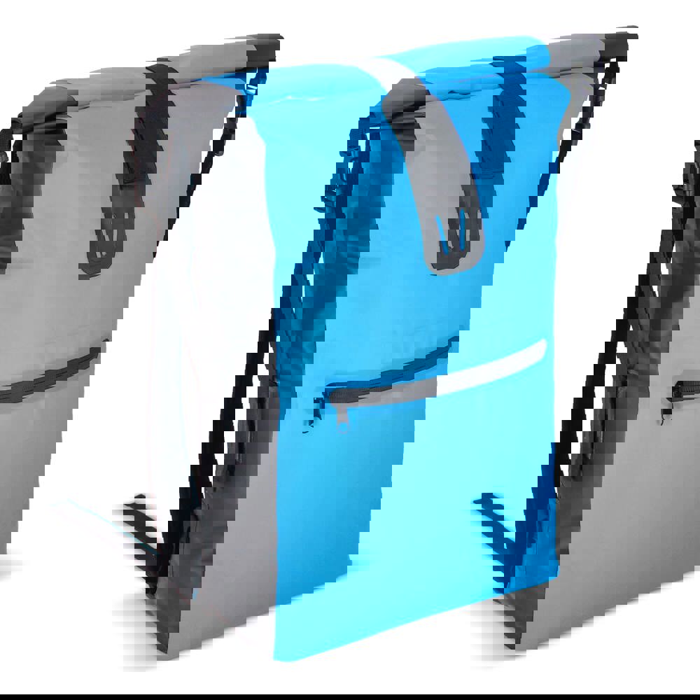 Verstellbarer, wetterfester Rucksack aus robustem Material. Das Rolltop kann auf zwei Arten geschlossen werden, was zusätzliche Flexibilität bietet. Die verschweißten Nähte halten den Inhalt trocken und die Schultergurte sind für den Komfort gepolstert.