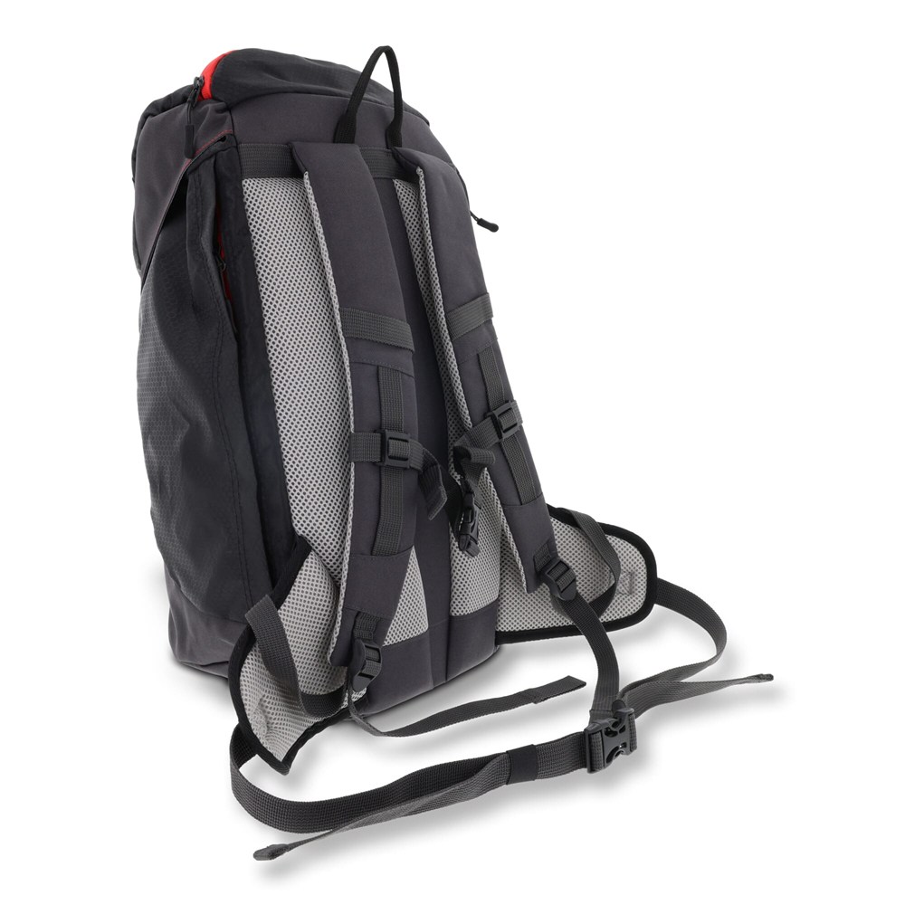 Dieser Rucksack eignet sich für den Transport Ihrer Habseligkeiten beim Wandern. Dieser Rucksack verfügt über ein großes Fach, das ein separates Laptop-Fach enthält, verstellbare Schultergurte und einen Riemen mit Schnappverschluss, der den Rucksack kompakt zusammenhält, sowie eine Netztasche für eine Trinkflasche.