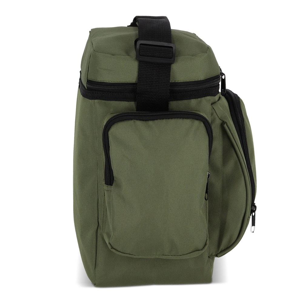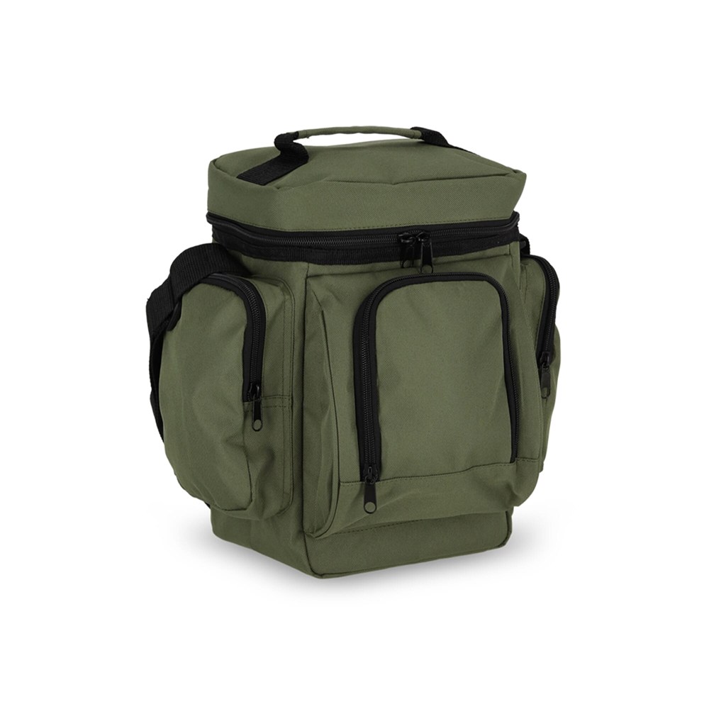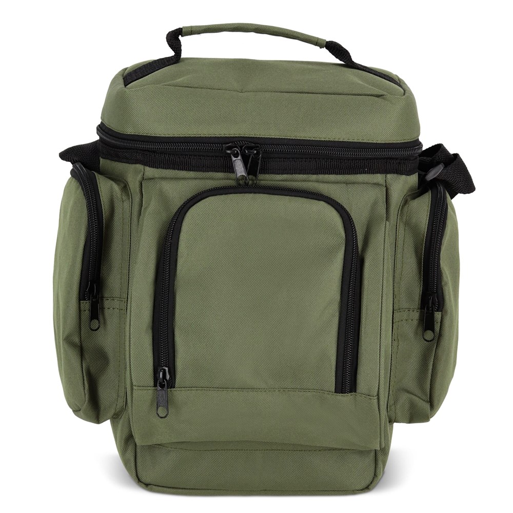 Diese Lunch-Kühltasche ist aus recyceltem PET in strapazierfähigem 600D-Material gefertigt und hat ein PEVA-Futter zur Isolierung. Sie hat zwei Seitentaschen mit Reißverschluss und eine Fronttasche mit Reißverschluss für zusätzlichen Stauraum. Der verstellbare Schultergurt und der obere Tragegriff erleichtern das Tragen.