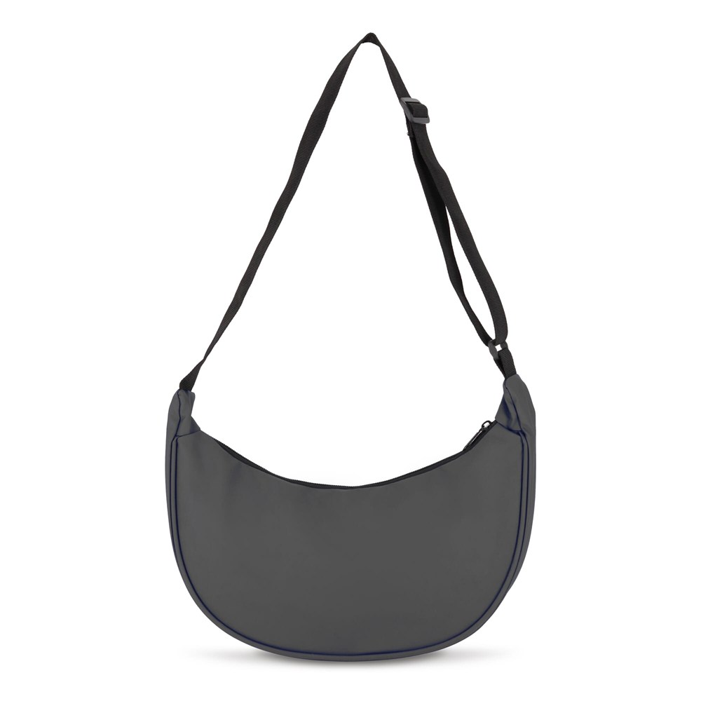 Diese Halbmond-Tasche aus PU-beschichtetem, recyceltem PET aus 600D-Material verfügt über einen verstellbaren Schultergurt und zwei Innentaschen für Zubehör zur geordneten Aufbewahrung.