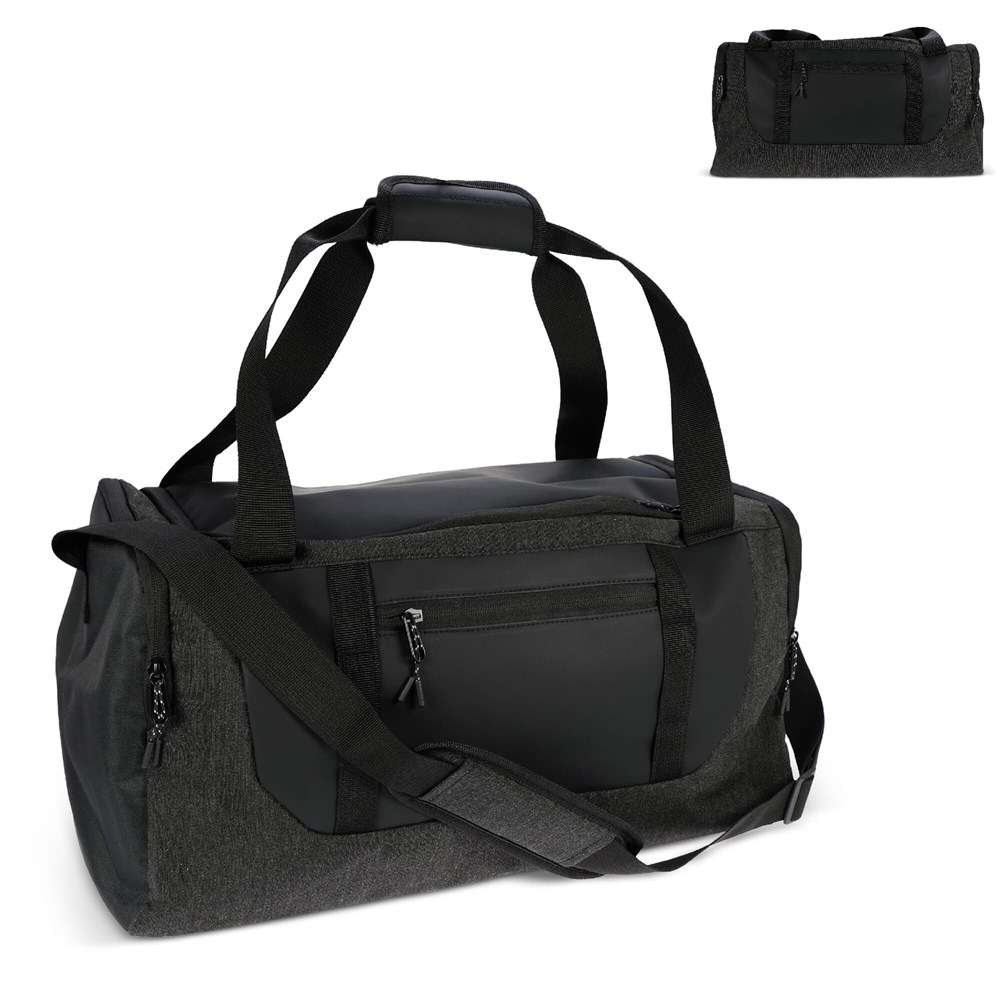 Mit der Liam RPET Duffle Bag können Sie Ihren Wochenendausflug aufwerten. Sie wurde aus recyceltem PET-Material hergestellt und ist ein schicker und nachhaltiger Reisebegleiter. Mit viel Platz und stilvollen Details sorgt Liam dafür, dass Sie sowohl modisch als auch umweltfreundlich unterwegs sind. Packen Sie Ihre wichtigsten Utensilien für eine bewusste Flucht!