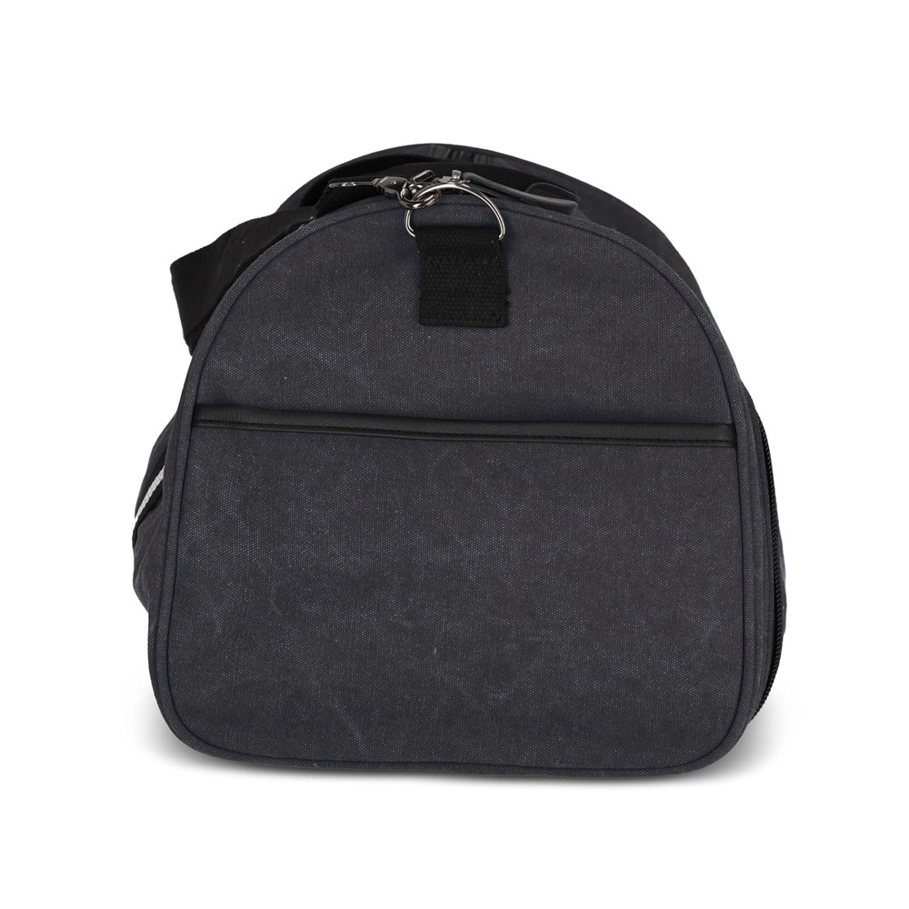 Elegante Reisetasche aus recyceltem Baumwoll-Canvas. Mit 100% recyceltem, reflektierendem Gurtband, luxuriösen Reißverschlüssen und Griffen sowie einem Futter aus 100% recyceltem Polyester. Mit seitlichen Tragegriffen, verstellbarem, abnehmbarem Schultergurt, 1 Seitentasche, 2 Vordertaschen und 3 Innentaschen, eine davon mit Reißverschluss.